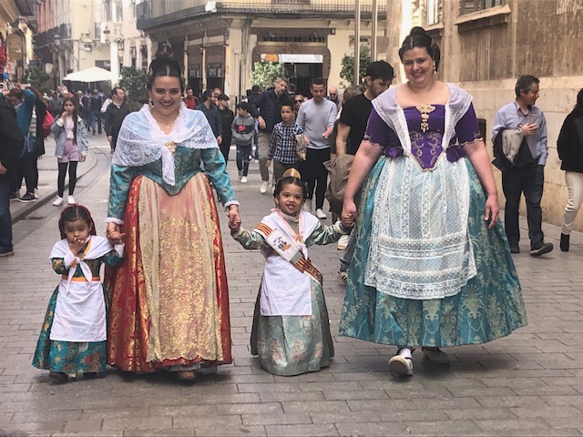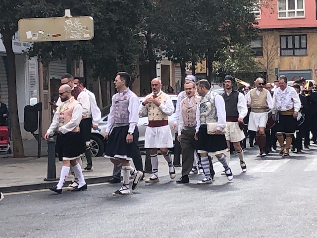 Providing the music are traditional chirimias and drums, and resounding throughout the city are Spanish rumbas and boleros, marches and waltzes, or modern rock music – each Fallas Commission does its own thing. The parade would sometimes include men and boys in traditional dress as well, but this wasn’t always the case.