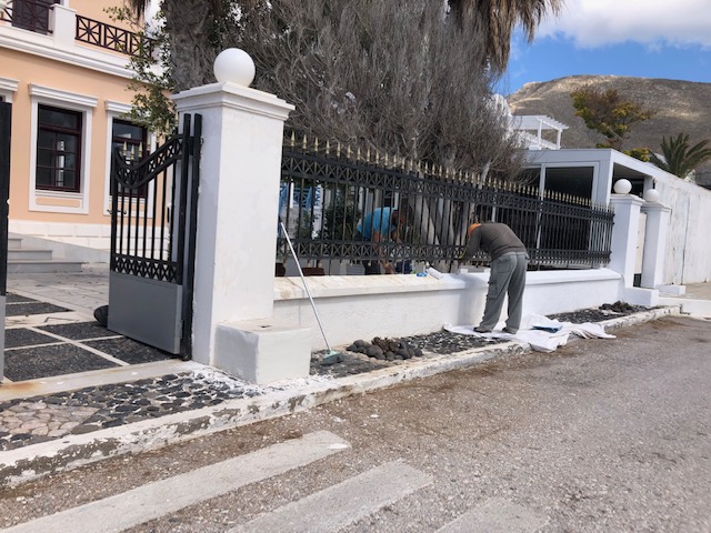 I saw these men painting the fence white and stopped to ask how often it needed to be painted and they told me it was an annual chore. Wow!