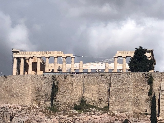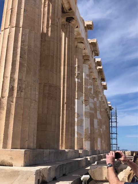 The white parts of the columns are new marble, dug from the same quarry as the original, but not weathered for 2500 years! It only took nine years to build and it has been under renovation for 40 years, and is nowhere near done. Everyone who worked on it, even the slaves, were paid as they only wanted positive energy to infuse the project. The Parthenon was basically undamaged until it was bombed by the Venetians in 1688. The damage was compounded by the fact that the parthenon was used to store gun powder!