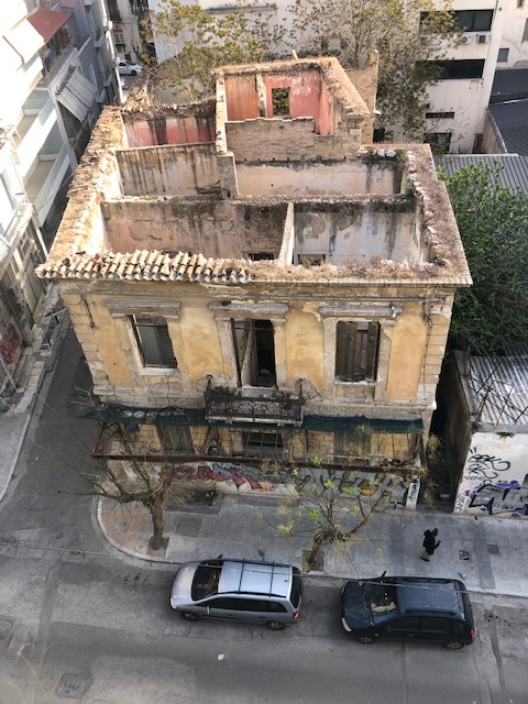 Athens is a large (4.5 million), gritty city in which half of the population of Greece lives. Even the wealthier, more touristy areas have abandoned, roofless buildings, but it didn’t feel like a dangerous city to me (view from my airBNB).